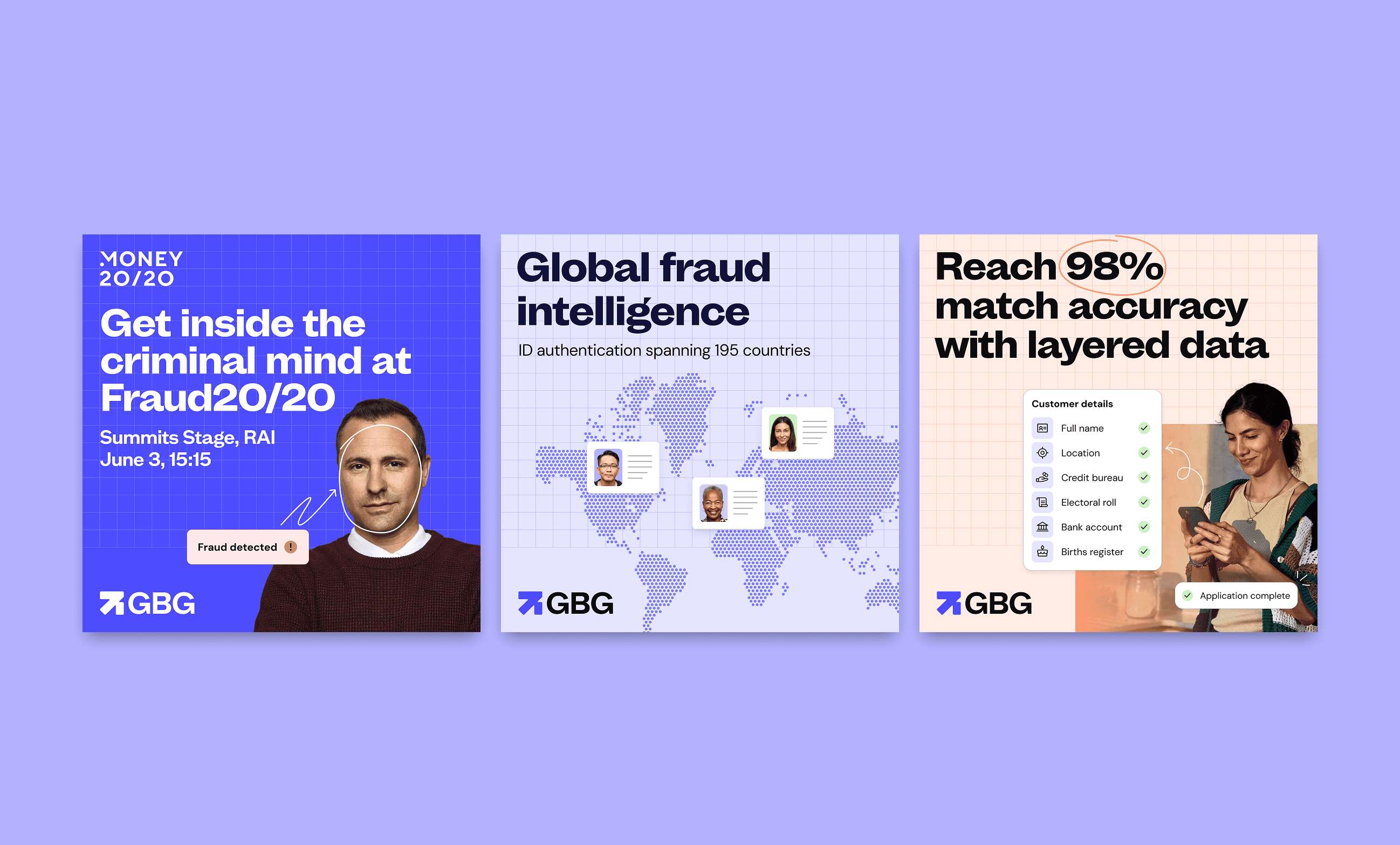 I led a full in-house global rebrand to unify the portfolio under a single GBG master brand. The approach focused on clarity, flexibility, and longevity — creating a brand system that could work consistently across product interfaces, marketing campaigns, and digital experiences, while remaining adaptable to future growth.